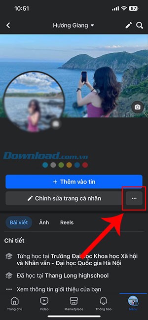 Bước 2: Chọn biểu tượng dấu ba chấm để mở ra các tùy chọn cài đặt hồ sơ.