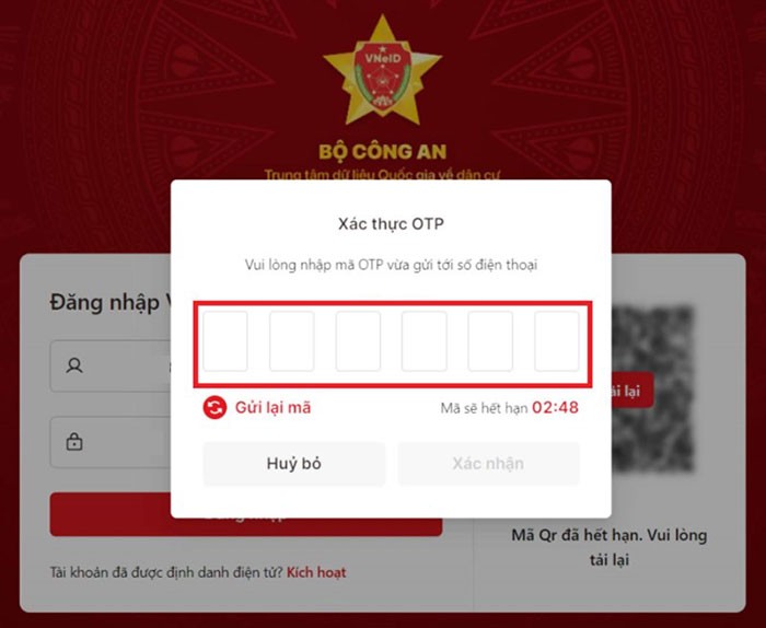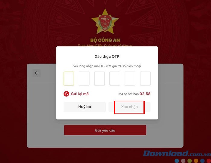 Bước 3: Một mã OTP sẽ được gửi đến số điện thoại mà bạn đã đăng ký. Hãy nhập OTP này vào ô tương ứng và nhấn Xác nhận để xác minh.