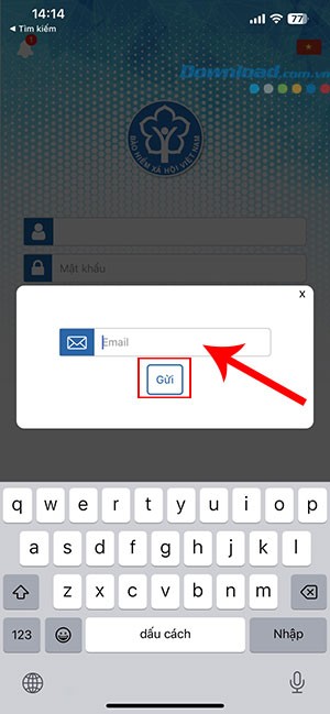 Bước 2: Điền địa chỉ email mà bạn đã sử dụng khi đăng ký tài khoản VssID, sau đó nhấn Gửi. Tiếp theo, hãy đóng cửa sổ thông báo xác nhận việc đã gửi mã OTP đến địa chỉ email của bạn.