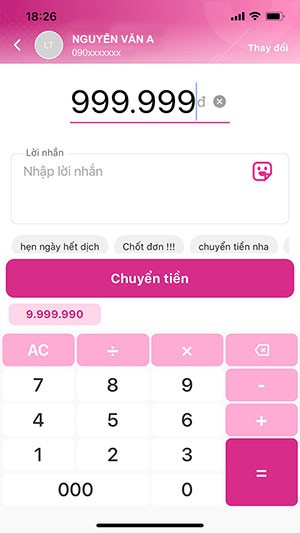 Bước 3: Nhập số tiền cần chuyển, ấn nút Chuyển tiền và chọn Xác nhận để hoàn tất giao dịch chuyển tiền từ Ví Chính sang Ví Phụ.