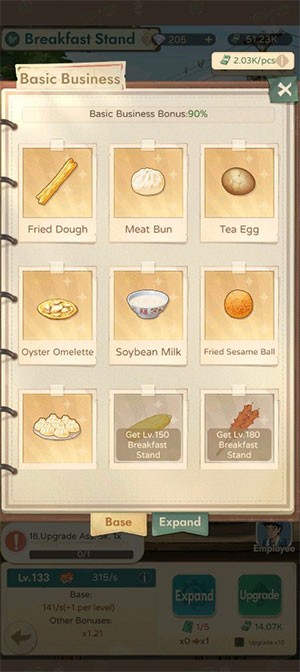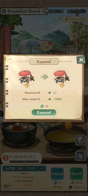 - Nâng cấp quầy ăn sáng đòi hỏi một khoản tiền mặt (Cash) nhất định. Chi phí sẽ tăng lên theo cấp độ, nhưng đồng thời, doanh thu cũng sẽ được cải thiện đáng kể.