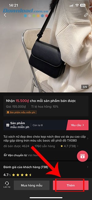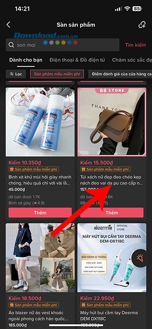 Bước 6: Tìm sản phẩm bạn muốn dùng thử và chạm vào sản phẩm đó. Sau đó, nhấn vào nút Thêm để đưa sản phẩm vào giỏ hàng.