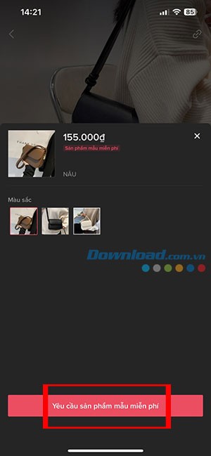 Bước 3: Nhấn vào nút "Nhận mẫu miễn phí". Nút này thường xuất hiện nổi bật trên trang sản phẩm.