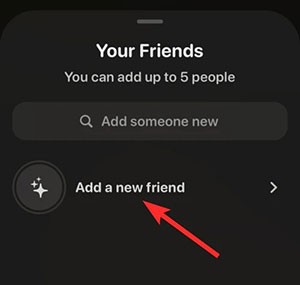 Bước 3: Để thêm bạn bè, hãy chạm vào tùy chọn Add a new friend. Hệ thống sẽ hiển thị danh sách liên hệ hiện có của bạn. Bạn cũng có thể sử dụng thanh tìm kiếm Add someone new để nhập tên người bạn cần tìm.