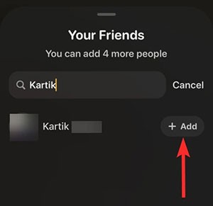 Bước 4: Tìm tên người bạn mà bạn muốn kết nối và nhấn vào biểu tượng + Add nằm ngay cạnh tên đó. Lưu ý, người bạn này cần sở hữu một chiếc iPhone để có thể sử dụng tính năng này.