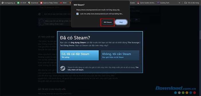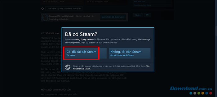 Bước 2: Chọn Có, đã cài đặt Steam để được chuyển hướng đến trang game trên ứng dụng Steam dành cho máy tính. Bạn cũng có thể mở ứng dụng Steam trên PC và tìm kiếm Tai Ương để tiến hành tải game.