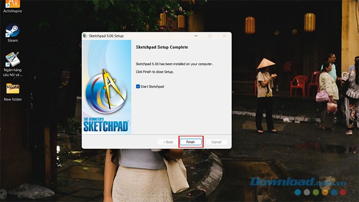 Bước 8: Sau khi quá trình cài đặt hoàn tất, chọn Start Sketchpad và nhấn Finish.