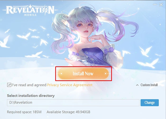Bước 4: Nhấn vào nút Install Now để khởi động quá trình cài đặt Revelation: Thiên Dụ trên máy tính của bạn.