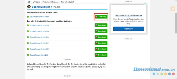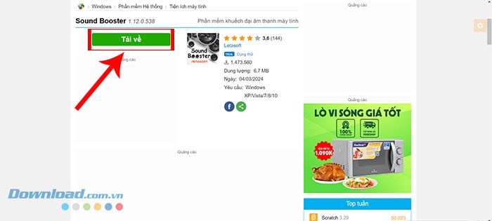 Bước 1: Truy cập vào đường link tải Sound Booster và chọn nút Tải về để bắt đầu quá trình tải xuống.