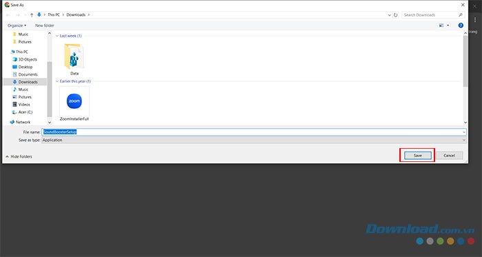 Bước 3: Chọn vị trí trên máy tính để lưu trữ file cài đặt Sound Booster, sau đó nhấn Save để xác nhận.