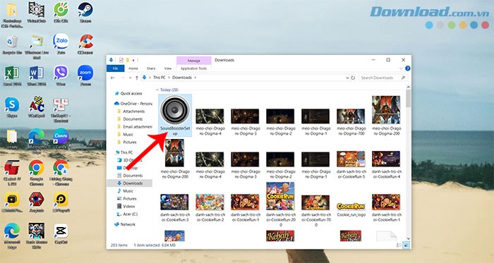 Bước 4: Sau khi quá trình tải hoàn tất, mở thư mục chứa file vừa tải và thực hiện nhấp đúp chuột vào file SoundBoosterSetup.