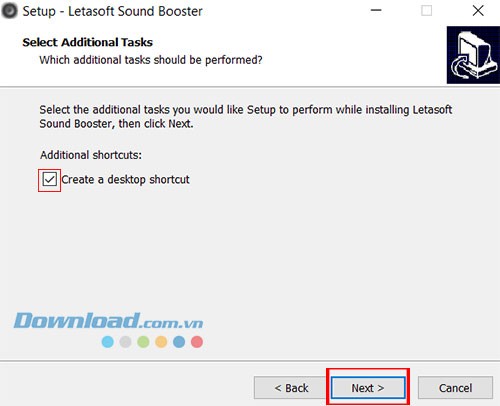 Bước 8: Tùy chọn tạo shortcut trên desktop để tiện truy cập bằng cách chọn Create a desktop shortcut và nhấn Next.
