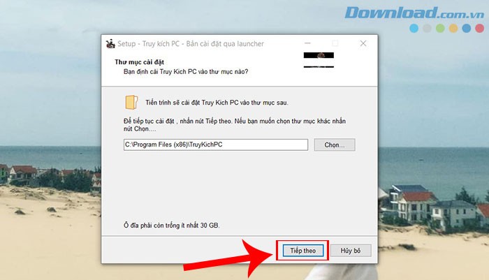 Bước 2: Trong giao diện cài đặt Truy Kích PC, lựa chọn thư mục cài đặt mong muốn và sau đó nhấn nút Tiếp theo để tiếp tục.