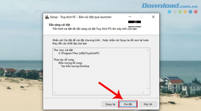 Bước 4: Nhấn vào nút Cài đặt để bắt đầu quá trình cài đặt trò chơi trên máy tính của bạn.