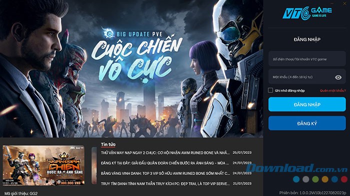 Bước 6: Sau khi khởi động lại, bạn có thể khởi chạy trò chơi bằng cách nhấp đúp vào biểu tượng Truy Kích PC trên màn hình desktop. Khi giao diện trò chơi hiển thị, hãy chọn Đăng nhập nếu bạn đã sở hữu tài khoản VTC Game, hoặc Đăng ký để tạo một tài khoản mới và bắt đầu khám phá tựa game FPS đang được ưa chuộng nhất hiện nay.