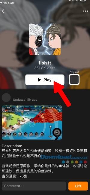 Bước 6: Trên trang giới thiệu trò chơi, nhấn Play để bắt đầu khám phá thế giới câu cá đầy thú vị của Câu Cá Vạn Cân.