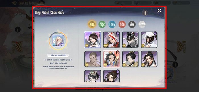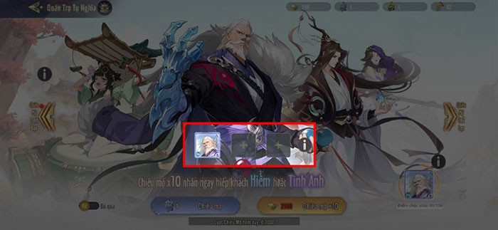 Sau khi đã chọn được tướng ưng ý, bạn có thể chuyển sang lựa chọn tướng khác để tối ưu hóa tỷ lệ nhận được tướng mạnh. Bên cạnh đó, hãy nhấn vào nút Hiệp Khách Chúc Phúc, thường được đặt ở góc dưới cùng bên phải màn hình, để chọn hiệp khách mà bạn cần.
