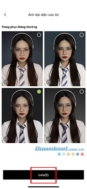 Bước 5: Sau khi quá trình áp dụng hiệu ứng hoàn tất, Hypic sẽ hiển thị 4 phiên bản ảnh theo phong cách bạn đã chọn. Chọn một hoặc nhiều ảnh bạn ưng ý và nhấn Lưu để tải chúng về thư viện ảnh trên thiết bị của bạn.