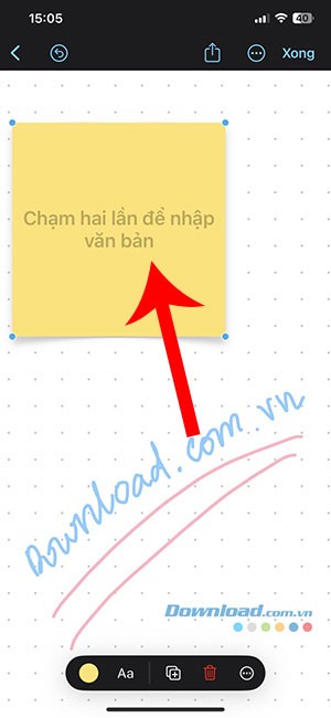 Bước 3: Một tờ ghi chú màu vàng sẽ ngay lập tức xuất hiện trên canvas, kèm theo thông báo Chạm hai lần để nhập văn bản.