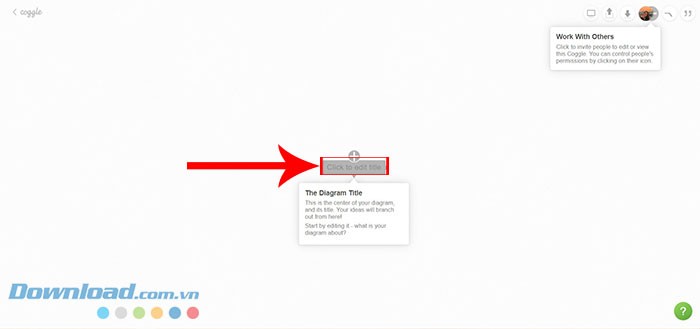 Bước 3: Giao diện thiết kế sơ đồ tư duy sẽ được hiển thị. Mỗi sơ đồ trên Coggle đều khởi đầu bằng một ý chính trung tâm, đóng vai trò là tiêu đề của tài liệu và là trung tâm của toàn bộ bản đồ tư duy.