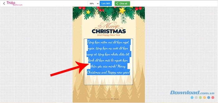 Chọn một mẫu thiệp phù hợp từ các lựa chọn trên > Điền lời chúc cá nhân vào thiệp > Nhấn vào nút Lưu ảnh để tải về > Nhấn nút Save để hoàn tất.