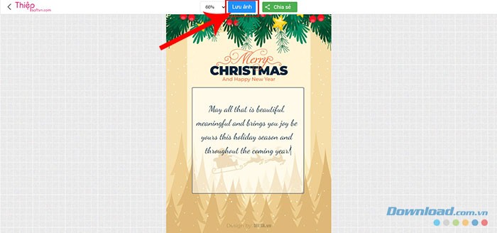Bước 3: Sau khi đã hoàn thiện lời chúc, hãy nhấn vào nút Lưu ảnh để tải thiệp đã thiết kế về thiết bị của bạn.