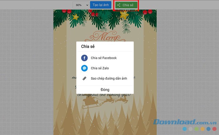 Bạn cũng có thể chia sẻ nhanh chóng những tấm thiệp Noel độc đáo này đến mọi người bằng cách sử dụng chức năng Chia sẻ, thông qua các nền tảng mạng xã hội.