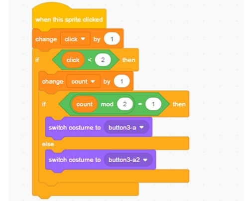 Để theo dõi lượt chơi, chúng ta sẽ tạo một biến. Vì trò chơi cờ caro thường bắt đầu với người chơi X, chúng ta có thể sử dụng một khối mod để kiểm tra xem số lần nhấp chuột có phải là số lẻ hay không. Nếu đúng, ô vuông sẽ hiển thị ký hiệu X; ngược lại, ô vuông sẽ hiển thị ký hiệu O.