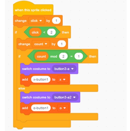 Thực hiện tương tự cho các ô vuông còn lại, nhưng hãy nhớ thay đổi tên biến danh sách cho phù hợp (ví dụ: x-button2, x-button3, o-button2, o-button3).
