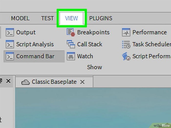 Bước 1: Việc lựa chọn và thêm các tập lệnh vào các đối tượng trong trò chơi được thực hiện bằng cách nhấp vào tab View. Các công cụ cần thiết sẽ được hiển thị.