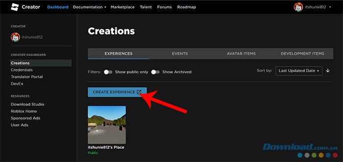 - Chọn Create Experience để bắt đầu tạo dự án mới.