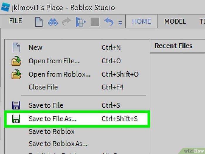 Bước 5: Chọn Save to File As để lưu trò chơi của bạn trực tiếp vào máy tính dưới dạng một tệp Roblox.