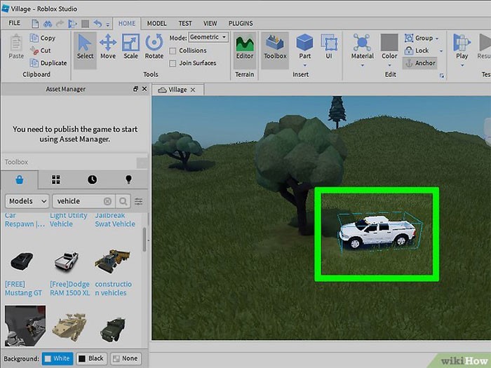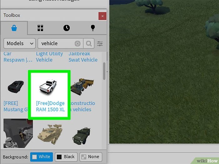 Bước 3: Gõ tên của đối tượng mong muốn vào ô tìm kiếm và nhấn phím Enter. Roblox Studio sở hữu một kho tàng đồ vật phong phú do cộng đồng người dùng tạo ra, cho phép bạn tìm kiếm mọi thứ, từ tán cây, tòa nhà, phương tiện, nội thất, đến các vật phẩm trang trí và nhiều hơn nữa.