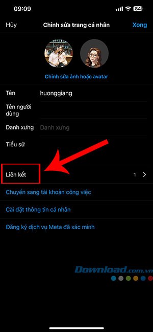 Bước 3: Trong giao diện Chỉnh sửa trang cá nhân, nhấn vào mục Liên kết.