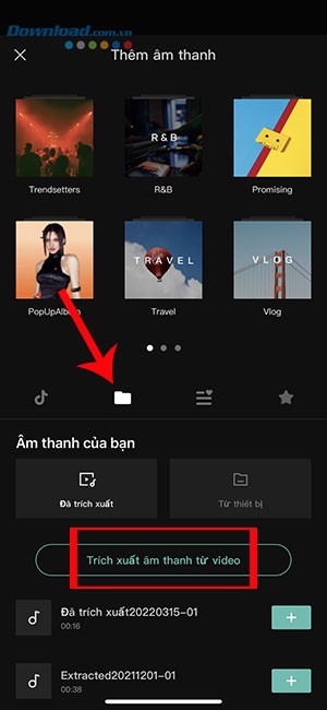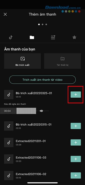 Bước 4: Để thêm âm thanh đã trích xuất vào video đang chỉnh sửa, hãy nhấn vào nút dấu cộng.