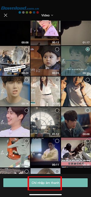 Bước 3: Chọn video nguồn mà bạn muốn trích xuất âm thanh và nhấn vào Chỉ nhập âm thanh.
