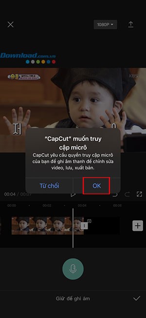 Bước 2: Bắt đầu quá trình ghi âm bằng cách nhấn và giữ phím ghi. Trong trường hợp hệ thống yêu cầu quyền truy cập micro, hãy xác nhận bằng cách nhấn OK.