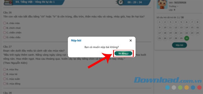 Bước 6: Ấn nút Tôi đồng ý để xác nhận việc nộp bài.