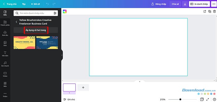 Sau khi nhấp vào một mẫu danh thiếp mà bạn ưng ý, hãy chọn Áp dụng cả hai trang nếu bạn muốn sử dụng cả mặt trước và mặt sau của mẫu đó trong thiết kế của mình.