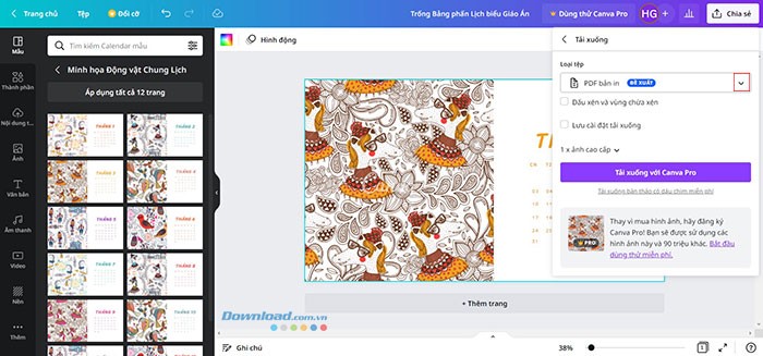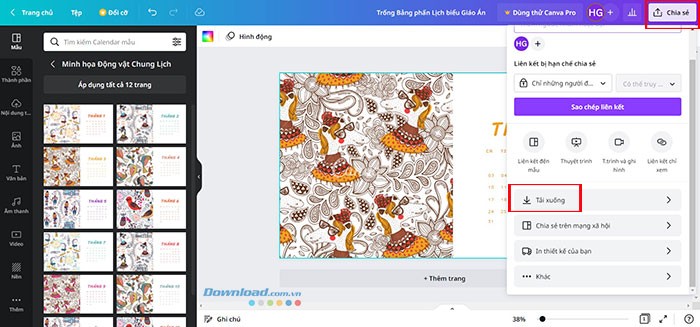 Khi bạn đã hoàn toàn hài lòng với thiết kế lịch của mình, hãy nhấn vào biểu tượng mũi tên ở góc trên bên phải để tải xuống.