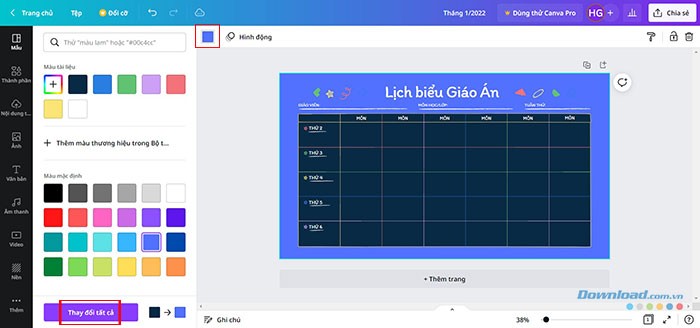 - Màu mặc định: Các màu có sẵn trong thư viện của Canva.