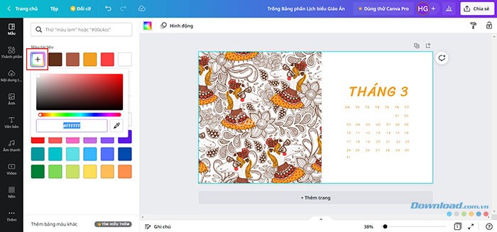 - Màu tùy chỉnh: Nhấn vào ô màu có dấu cộng để chọn một màu sắc riêng biệt.