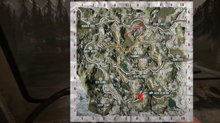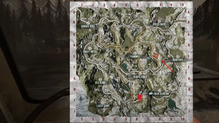 Kho báu thứ bảy nằm ngay phía trên khu vực Cưa xẻ, gần nơi ẩn náu của Gavrilov, tọa độ D5. Nếu gặp khó khăn trong việc tìm kiếm, cốt truyện sẽ tự động dẫn dắt bạn đến địa điểm này khi bạn được yêu cầu đi theo Gavrilov.