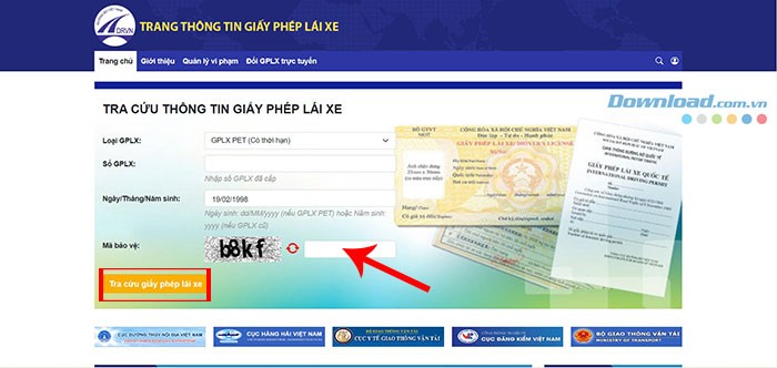 Bước 4: Cuối cùng, nhập Mã bảo vệ được hiển thị trên màn hình và nhấn vào nút Tra cứu giấy phép lái xe để bắt đầu quá trình kiểm tra.