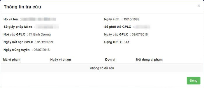 Ngoài ra, nếu chủ giấy phép lái xe có bất kỳ vi phạm giao thông nào, thông tin về các vi phạm này cũng sẽ được trình bày chi tiết.