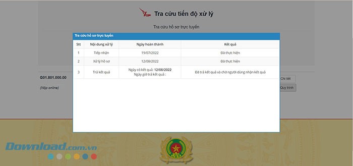 Hệ thống sẽ hiển thị thông tin chi tiết về tình trạng hồ sơ của bạn, bao gồm: