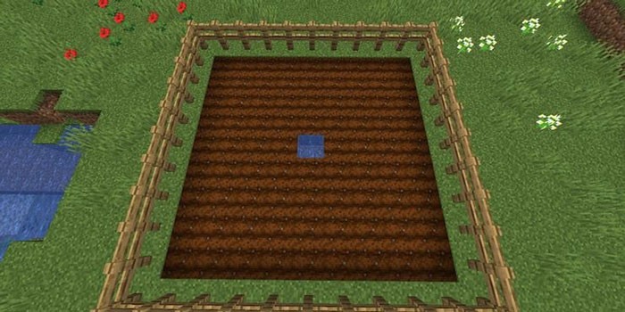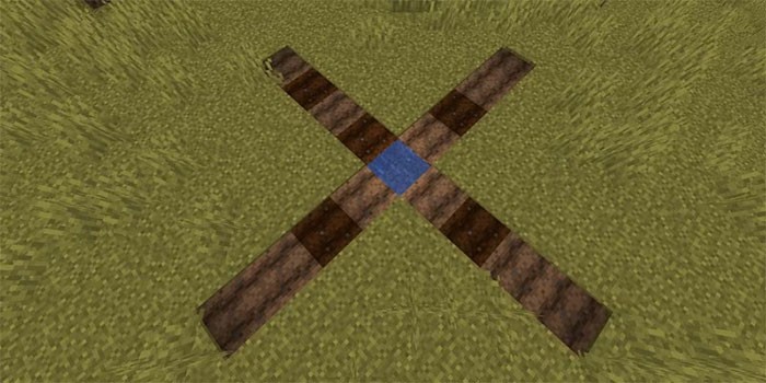 Nước đóng vai trò then chốt, là yếu tố hàng đầu quyết định sự phát triển của cây trồng trong Minecraft. Để đảm bảo đất trống có thể được xới, nguồn nước cần được đặt gần đó. Khoảng cách tối đa cho phép là 4 khối tính theo phương ngang hoặc dọc, trên cùng một độ cao, hoặc chỉ một khối phía trên.