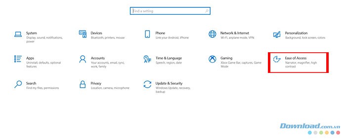 Bước 2: Chọn mục Ease of Access để tiếp tục.