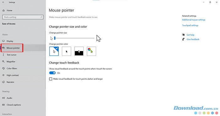 Bước 5: Nếu bạn thấy con trỏ chuột quá nhỏ hoặc khó nhìn, bạn có thể điều chỉnh kích thước của nó trong mục Change pointer size.
