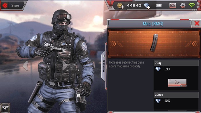 Trong khi nhiều game thủ chú trọng đến vẻ đẹp của skin, những người chơi am hiểu chiến thuật lại tập trung vào các trang bị có tác động trực tiếp đến lối chơi. Vũ khí có thể được mua bằng Gem hoặc Gold. Tuy nhiên, phần lớn vũ khí có được bằng kim cương chỉ có thời hạn sử dụng nhất định.